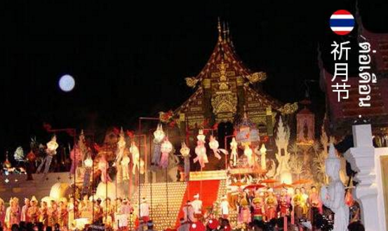 泰國人把中秋節喚做“祈月節”。每到這一天,各家各戶、男女老少都要參拜月亮。人們端坐祈禱,互相祝福。中秋桌上供奉著中國民間傳說的“八洞神仙”,桌上還擺滿了“壽桃”、“月餅”等美食(當地還有榴蓮味的月餅)。另外,泰國人在中秋節必吃柚子,一方面是因為正好是柚子上市的季節,一方面是因為柚子又大又圓,象征“團圓”。