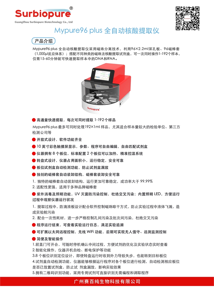 高通量快速提取,每次可同時提取1-192個樣品,歡迎聯系飛迪申請試用