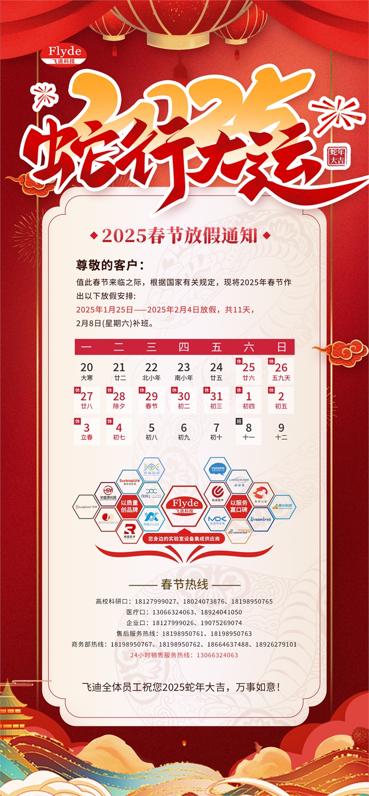 我司2025年春節(jié)放假時(shí)間為:2025年1月25日(農(nóng)歷12月26日、周六)至2025年2月4日(農(nóng)歷正月初七、周二),共計(jì)11天。