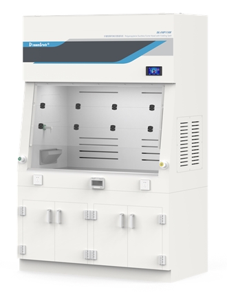 君勒鉑?(DreamLab?)DL-FHPF系列折窗型聚丙烯無管凈氣型通風(fēng)柜,在氣流回放到室內(nèi)之前用鍵合活性炭過濾器和/或HEPA過濾器將氣流中有毒有害的化學(xué)氣體和顆粒物成分高效地去除,同時為操作人員和大氣環(huán)境提供了可靠的保護(hù)。因為采用了一體式熱熔接耐腐蝕聚丙烯結(jié)構(gòu)和集成式接液盤,該通風(fēng)柜具有十分優(yōu)異的抗腐蝕特性,即便是腐蝕性極強的實驗也可以在這種通風(fēng)柜里進(jìn)行,一般的化學(xué)實驗自然更不在話下。用戶界面十分友好的DLTouch自動安全控制器,具有風(fēng)機自動控制、過濾器自動監(jiān)控、報警提示、實驗時間管理和累積能耗測定等功能。