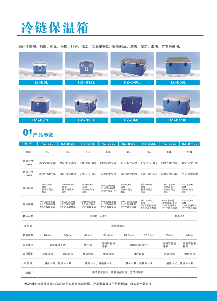 冷鏈保溫箱適用于醫院、藥房、藥企、疾控、科研、化工、實驗室等部門運輸藥品、試劑、疫苗、血液、樣本等使用。