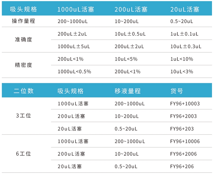 Surbiopure-FY96全自動樣品處理系統(tǒng)提供3種不同量程的移液模塊,供用戶根據(jù)需要進(jìn)行選擇更換,以下為各移液模塊相關(guān)參數(shù)。